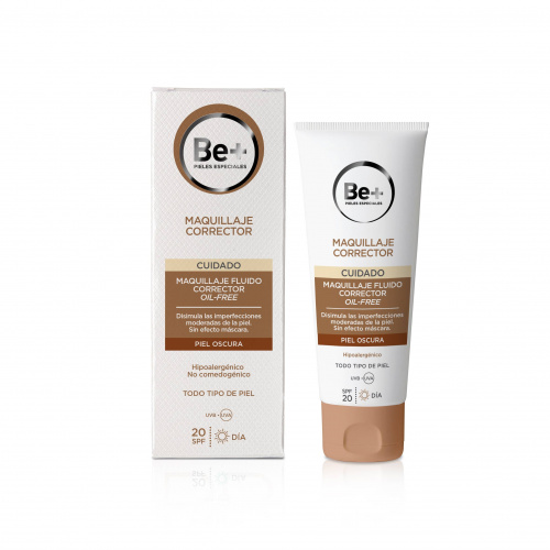 Be+ Maquillaje Fluido Corrector Oil-Free disimula las imperfecciones leves y moderadas en todo tipo de piel, incluso en las más sensibles y reactivas. Gracias a su poder cubriente, unifica el tono de la piel de forma natural, sin efecto máscara y con un acabado mate y sedoso. El maquillaje permanece inalterable durante más de 12 horas sin resecar la piel.